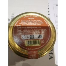 Viande et gras de porc*, foie de porc*, châtaignes 9% (origine France), eau, sel, poivre, piment de Jamaïque, thym, muscade.